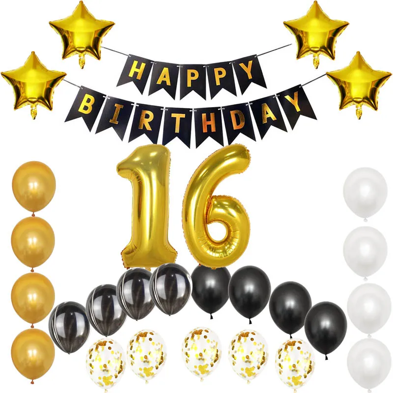 8 Musim Bahagia 40th Ulang Tahun Banner Balon Set Untuk 40 Tahun Persediaan Dekorasi Pesta Ulang Tahun Emas Hitam Aliexpress Mobile
